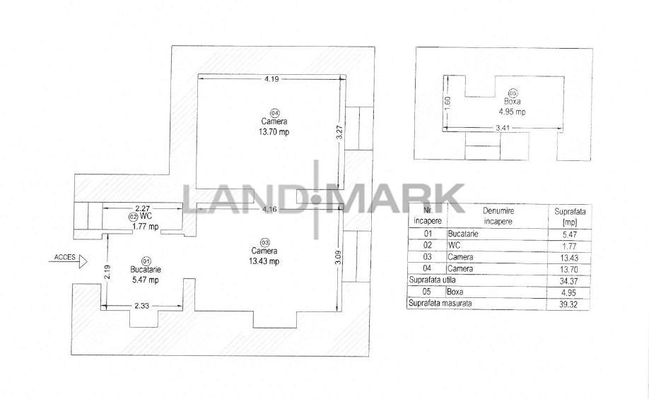 LANDMARK ofera spre vanzare apartament cu 2 camere, in imobil istoric in zona Piata Unirii , strada EUGENIU DE SAVOYA, situat la etajul 1 din 1 al unei cladiri istorice . Apartamentul dispune de 1 baie,1 bucatarie inchisa, 2 camere si o boxa la parter. Apartamentul este compartimentat in felul urmator: intrare directa in bucatarie, din care se face acces in baie si in camera de zi iar aici se acceseaza dormitorul. Suprafata utila este 34.37 mp + boxa de 5 mp.