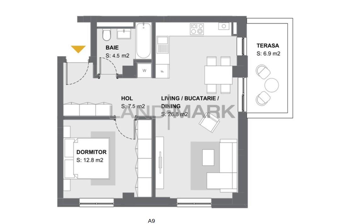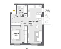 Apartamentul are o suprafata utila de 51.7 mp, o zona de living open space, plus o terasa de 6.9 mp, ideala pentru relaxare si pentru momente petrecute in aer liber. Se preda imediat, complet finisat “la cheie”, echipat cu sistem de incalzire in pardoseala si centrala termica proprie, pentru un confort termic ridicat in orice sezon.