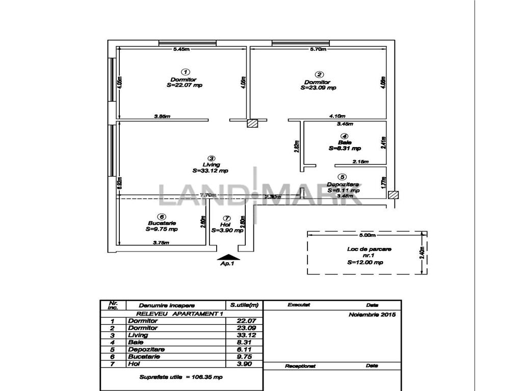 LANDMARK ofera spre vanzare apartament cu trei camere de lux, situat in zona centrala , strada de case . Apartamentul are o suprafata utila de 100 mp, va avea finisaje de lux si loc de parcare in curte. Imobilul va fi predat la cheie in vara lui 2016. Pretul este de 150000 euro. Fotografiile au fost facute intr-un alt imobil construit de acelasi dezvoltator si au ca scop prezentarea nivelului si a calitatii finisajelor. ID intern: 203179.