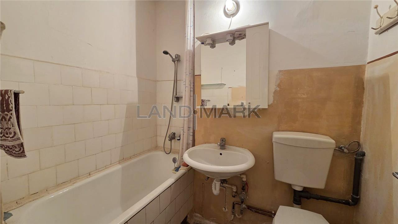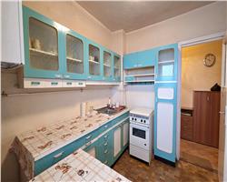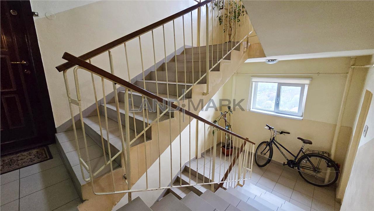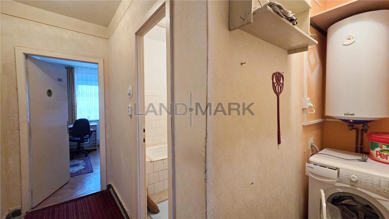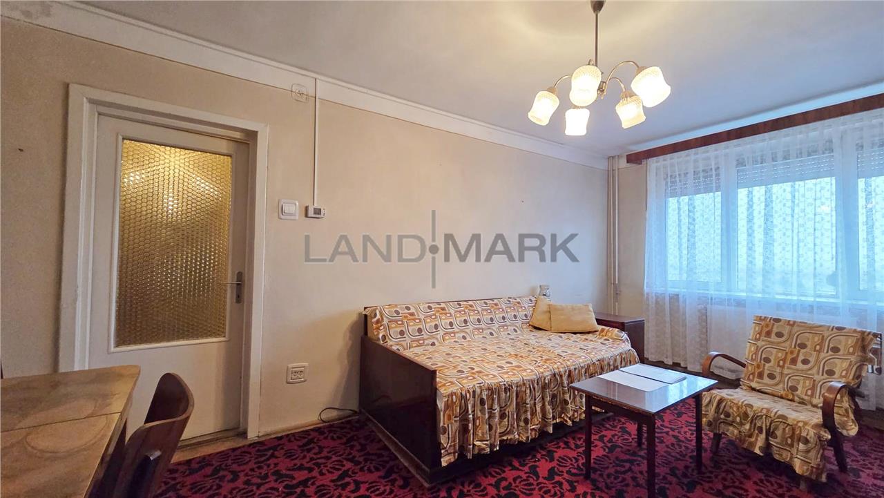 Este compartimentat astfel: hol acces, usa intrare metalica,bucatarie inchisa + balcon inchis cu posibilitate de marire bucatarie + camara, o camera de zi, alt hol, camera copii, baie cu vana, zona pentru masina de spalat cu posibilitate de modificare in wc de serviciu si domitor cu balcon inchis.Apartartamentul necesita renovare completa, tamplaria este din termopan, doar geamurile care despart camera de balcon sunt din lemn, podelele sunt amenajate cu gresie si cu parchet din lemn in stare buna, iar incalzirea se realizeaza cu centrala proprie pe curent cu posibilitate de racordare la gaz. Mobila din hol si camera de copii este in stare buna, relativ noua, deasemenea si frigiderul si masina de spalat. Apartamentul fiind pozitionat la et 9, vederea este foarte placuta, este liniste si nu este praf.