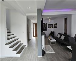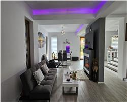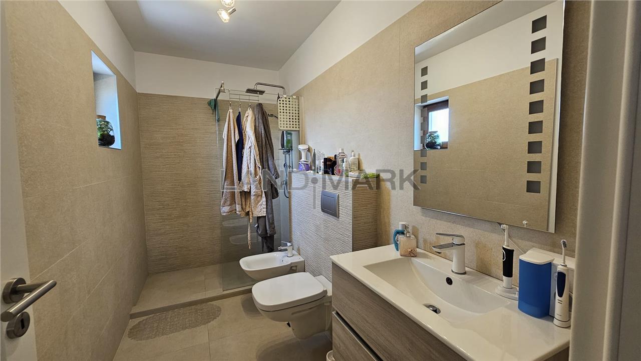 Proiectul este foarte frumos,util si elegant, materialele cat si amenajarile sunt premium: tamplarie Rehau, rulori electrice, incalzire in pardoseala, usa garaj si poarta electrica, curte amenajata cu gazon, aspensoare, plante ornamentale si beneficiaza de toate utilitatile