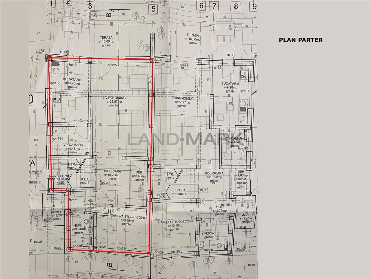 parter: hol acces generos cu loc pentru dressing, birou, baie cu dus, camera de zi, bucatarie cu posibilitate de inchidere + camara si terasa;