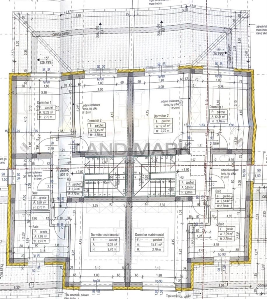 etaj: hol acces, dormitor matrimonial cu baie proprie, 2 dormitoare, baie cu vana