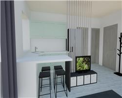 parter: hol acces, bucatarie inchisa,camara, baie, camera de zi cu iesire pe terasa;