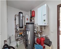 Sistemul de încălzire este eficient și versatil, realizat prin centrală termică pe gaz cu distribuție prin pardoseală, asigurând un confort termic optim. În plus, există și alternativa utilizării pompei de căldură pe curent. Proprietatea beneficiază de panouri solare montate pe acoperiș pentru prepararea apei calde, contribuind la reducerea costurilor de întreținere și la un consum energetic eficient.