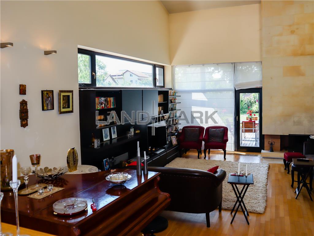 LANDMARK ofera spre vanzare, casa deosebita si generoasă in Braytim,premiata in 2008 in cadrul concursului anual de arhitectură pentru amenajarea interioară deosebită, casa fiind creată pentru o familie unită care se bucură în aceeași măsură de timpul petrecut împreună cu ceilalți, și de timpul pentru sine. Zona de parter este dedicată aproape în întregime socializării, iar spațiile comunică între ele; accesul se face pe latura nordică, cu lumină dinspre est, și se deschide direct către locul de luat masa, și apoi către living avand ca piesa principala de decor un minunat semineu imbracat in piatra naturala. Piesa principală a spațiului comun este lvingul – un spațiu pe două niveluri cu lumină dinspre est și sud, liber conectat cu locul de luat masa, echipat cu un minunat șemineu îmbrăcat în piatră naturală și deschis către o terasă generoasă, cu deck din lemn exotic, acoperită, și înconjurată de vegetație. Bucătăria este deservită de o cămară. Din bucătărie se poate accesa și garajul – un spațiu generos pentru o mașină, toate bicicletele familiei, și o serie de alte lucruri ce se depozitează la rece. Tot aici se află spațiul tehnic.