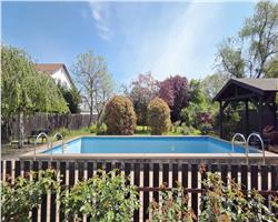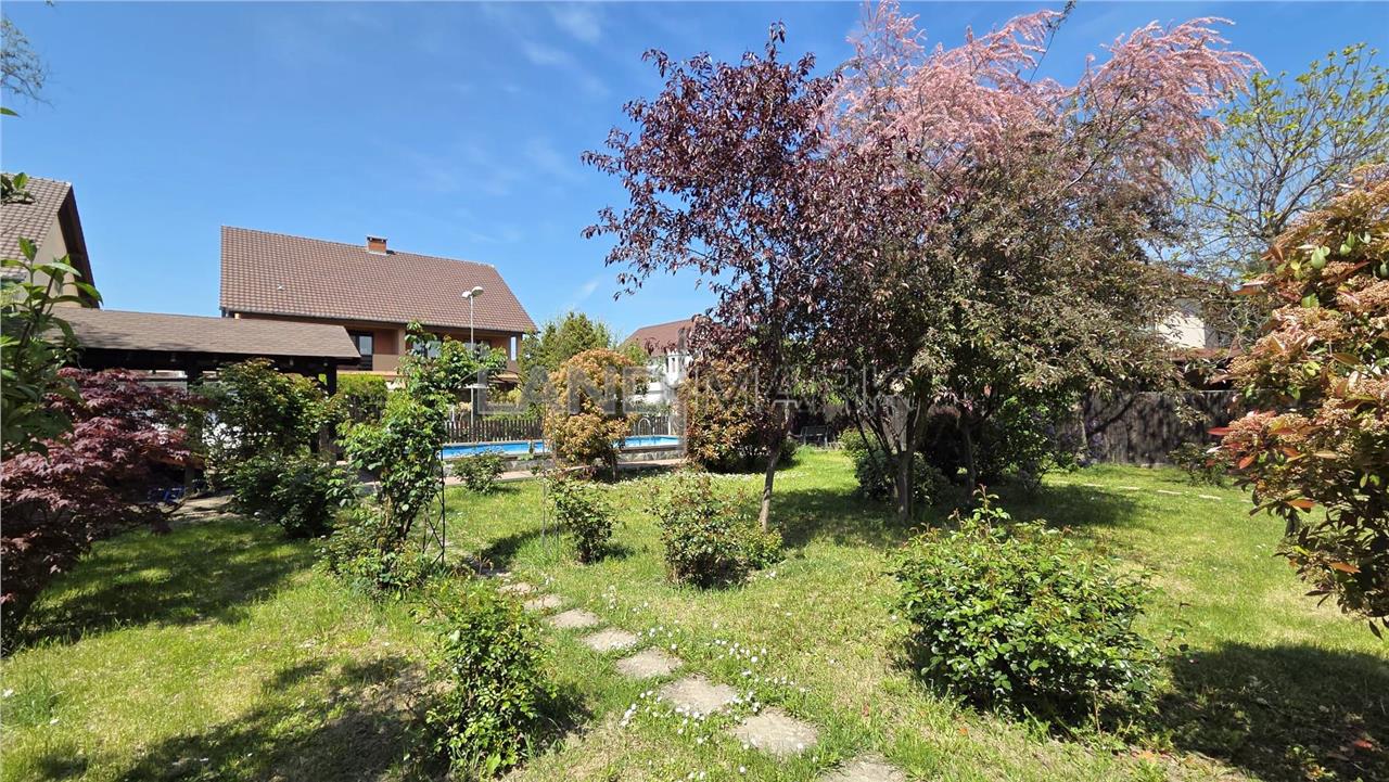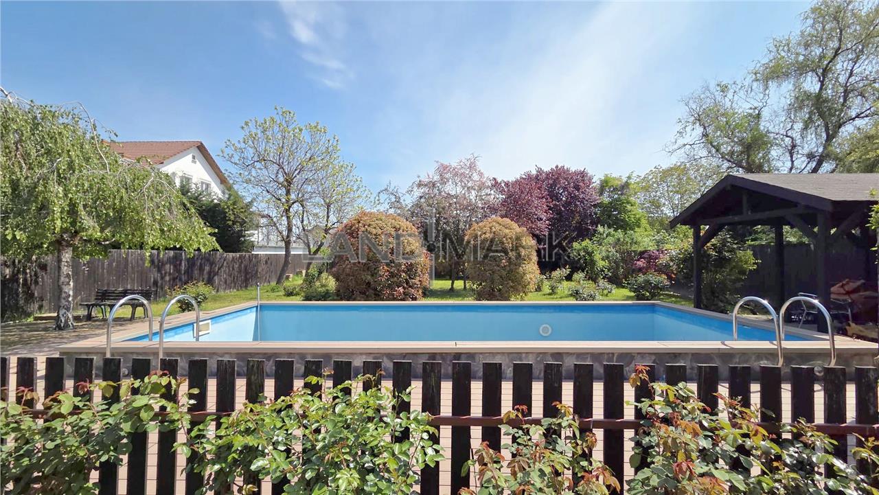 In gradina exista o piscina, garaj pentru 2 masini, foisor, loc gratar si o gradina frumoasa cu sute de trandafiri (total 1200 mp curte libera).