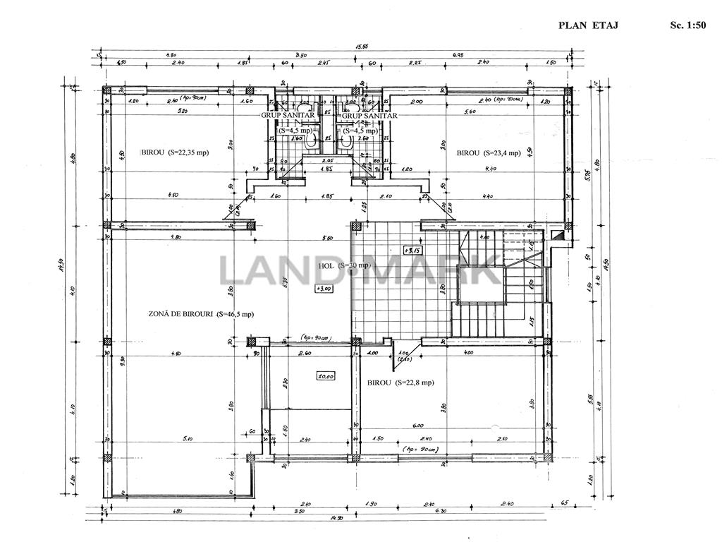 LANDMARK ofera spre vanzare cladire SAD in zona Lipovei aproape de IULIUS MALL . Regimul de inaltime este P+E+M, aproximativ 150 mp utili / nivel, iar terenul are o suprafata totala de 704 mp , curte privata cu 10 locuri de parcare proprie. Cladirea este finisata complet, dispune de grupuri sanitare pe fiecare nivel si beneficiaza de multiple imbunatatiri fiind izolata pe exterior, are sistem propriu de incalzire cu centrala pe gaz, tamplarie PVC cu geamuri termopan, climatizare si sistem de alarma. Recomandata ca si sediu firma, clinica medicala, birouri IT sau alte activitati comerciale.Pretul de vanzare este de 895.000 Euro ( TVA 0) . ID intern 211000