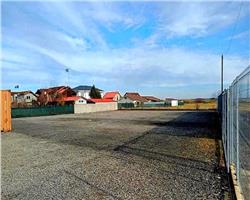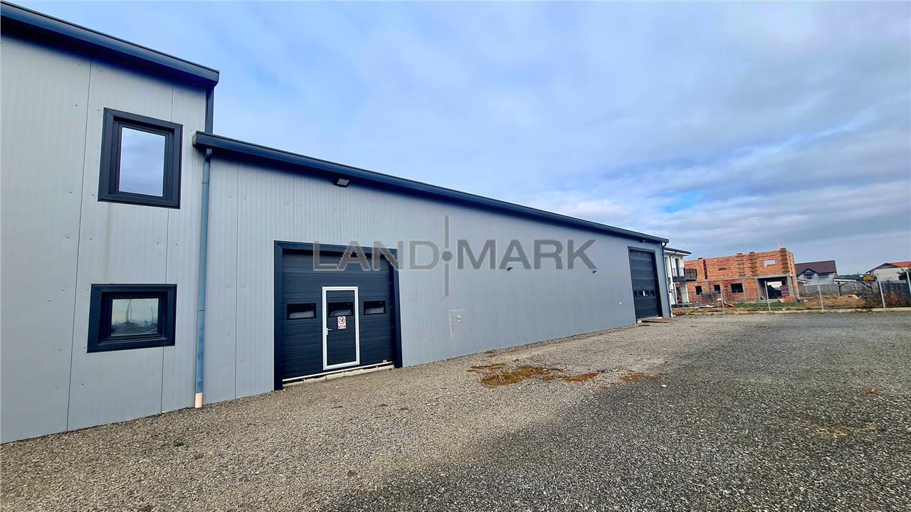Terenul aferent are o suprafață de 2.800 mp, complet amenajat, cu parcări auto, acces TIR – drive-in și împrejmuire cu gard.