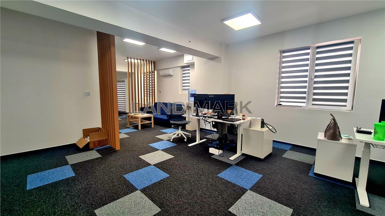 Spatiul in suprafata utila de 70 mp este amplasat la etajul 6 al imobilului, si este compus din zona de lucru open space, birou, loc chicineta si grup sanitar .