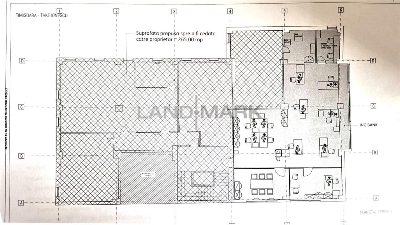LANDMARK ofera spre inchiriere spatiu de birouri open space, se pot lua minim 130 mp pana la 265 mp, in zona CENTRALA, pe bulevardul Take Ionescu. Spatiile disponibile sunt amplasate la etajul 1. Imobilul are supraveghere video, acces cartela magnetica, internet, telefon, interfon, fatada de sticla, usa intrare sticla, sala consiliu. In apropiere se afla centrul istoric, Tribunalul, ISHO. Pretul este de 10 euro+ TVA/mp. ID intern: 205638