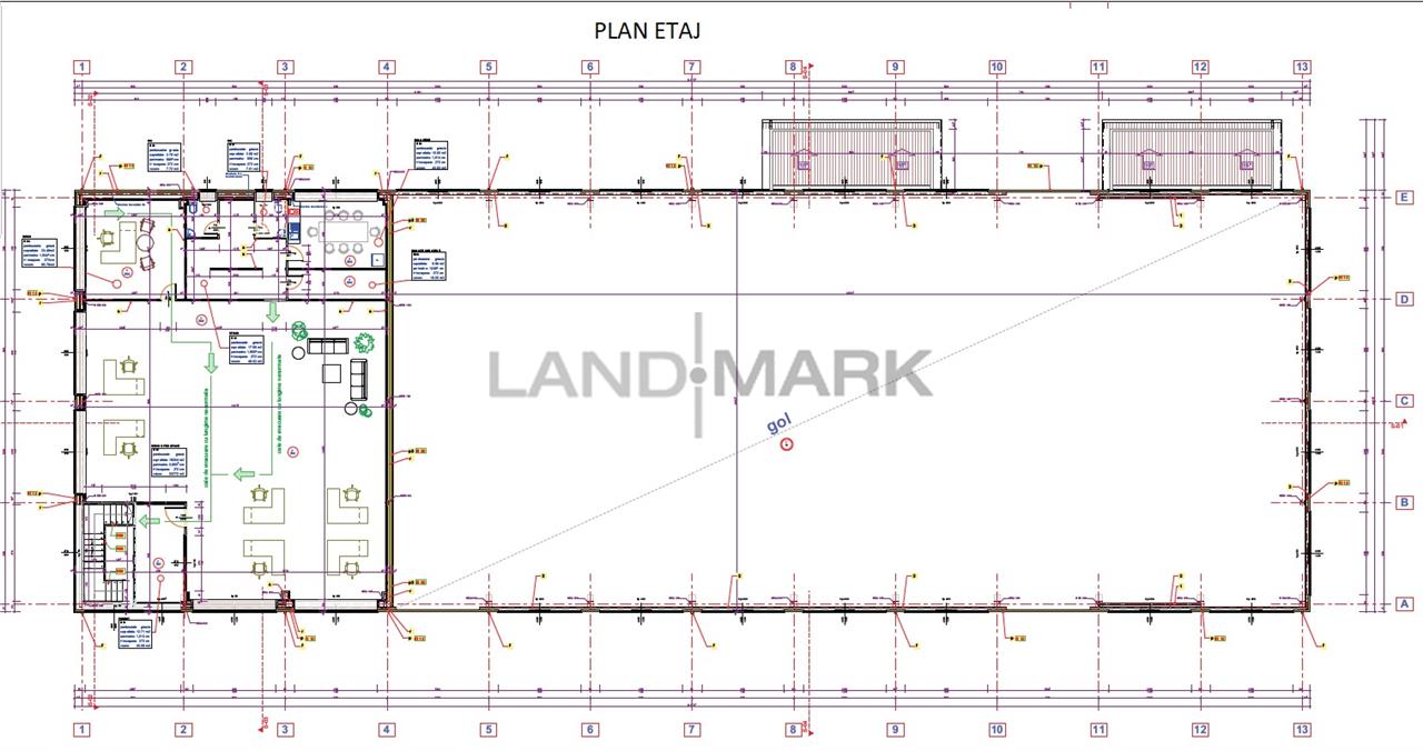 Parter: ~1.200 mp (hală de producție / depozitare, birouri, vestiare, grupuri sanitare)
