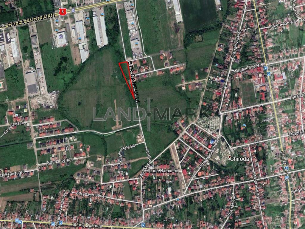 LANDMARK ofera spre vanzare cu teren Extravilan in zona LUGOJULUI-GHIRODEI, pe strada CAMPULUI, avand o suprafata de 6330 mp cu 2 deschidere de 56 ml si 230 ml.. Terenul are acces direct spre Calea Lugojului si dispune de toate utilitatile, iar strada este pietruita. Orientare Nord-Sud. Pretul este 500000 euro, 79 euro/mp negociabil. ID intern: 210756.